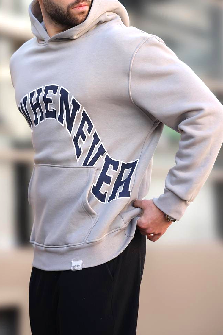 - Praktikus, szürke színű férfi pulóver, jellegzetes, kontrasztos felirattal, mindennapi életre vagy sétákra egyaránt alkalmas.