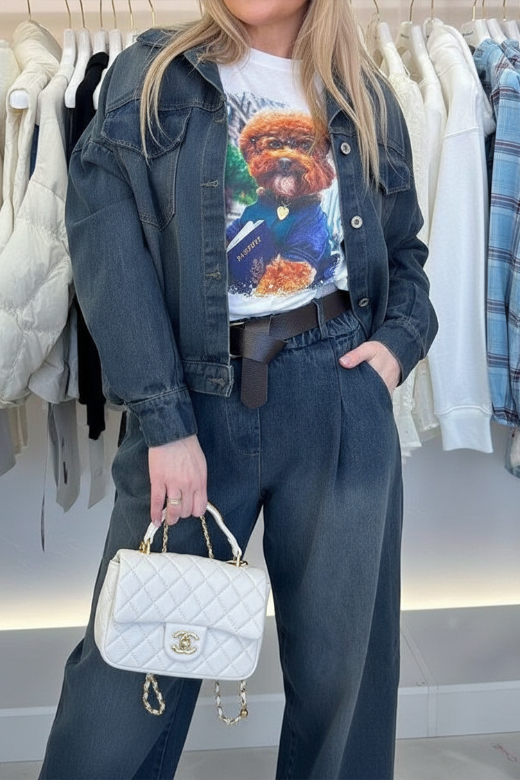 - Stílusos megjelenésért válaszd ezt a farmerdzsekit, amely bármilyen megjelenéshez illik.