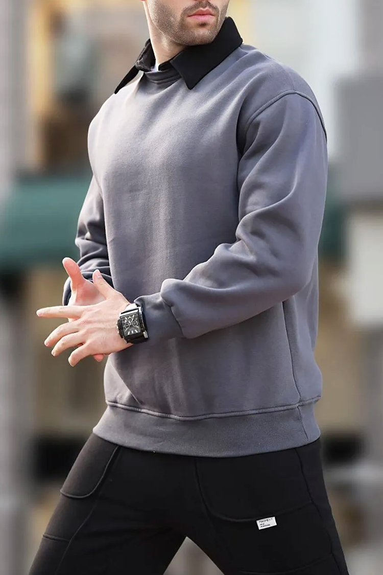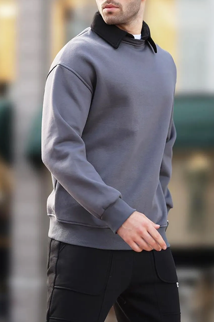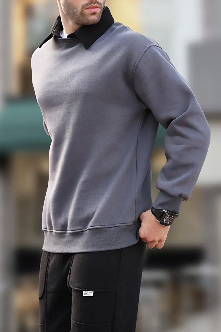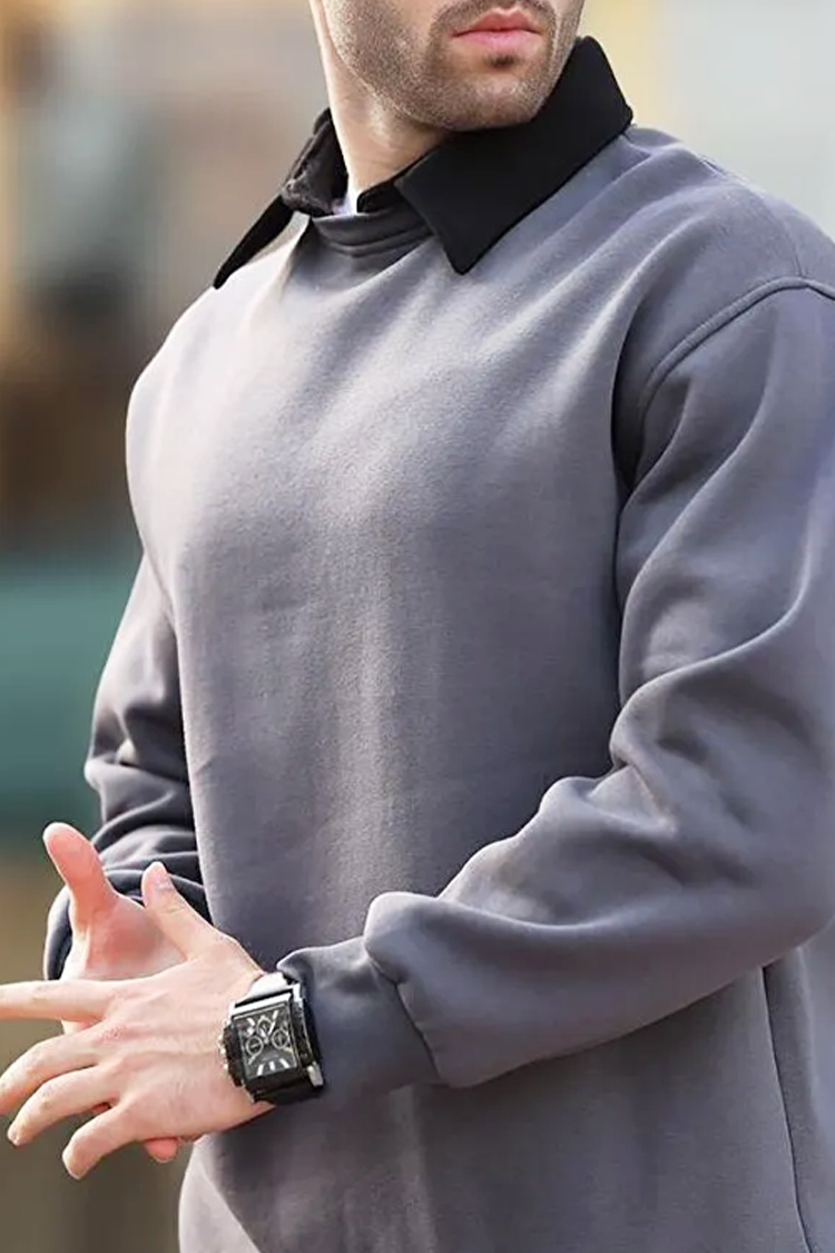 - Stílusos és mutatós férfi pulóver kontrasztos gallérral és univerzális szabással.