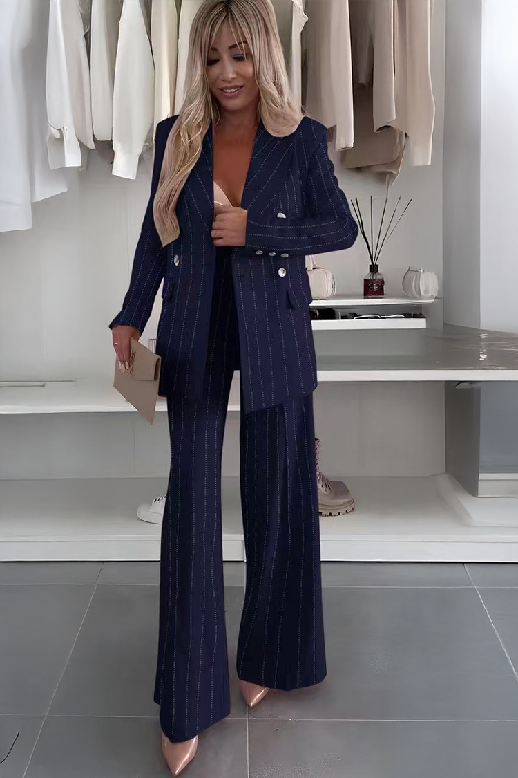 - A blézer dupla gombos szegéllyel, puffos ujjal és stílusos fedeles zsebekkel rendelkezik.