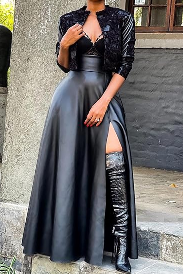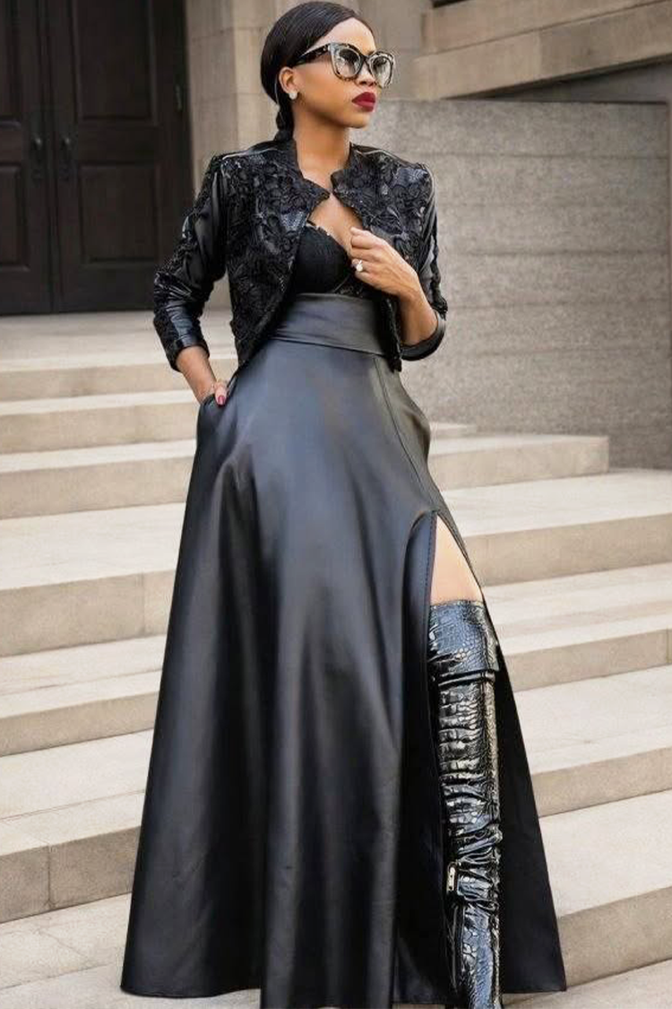 - Divatos, hosszú szoknya, kiváló minőségű eko bőrből, amely különféle alkalmakra viselhető.