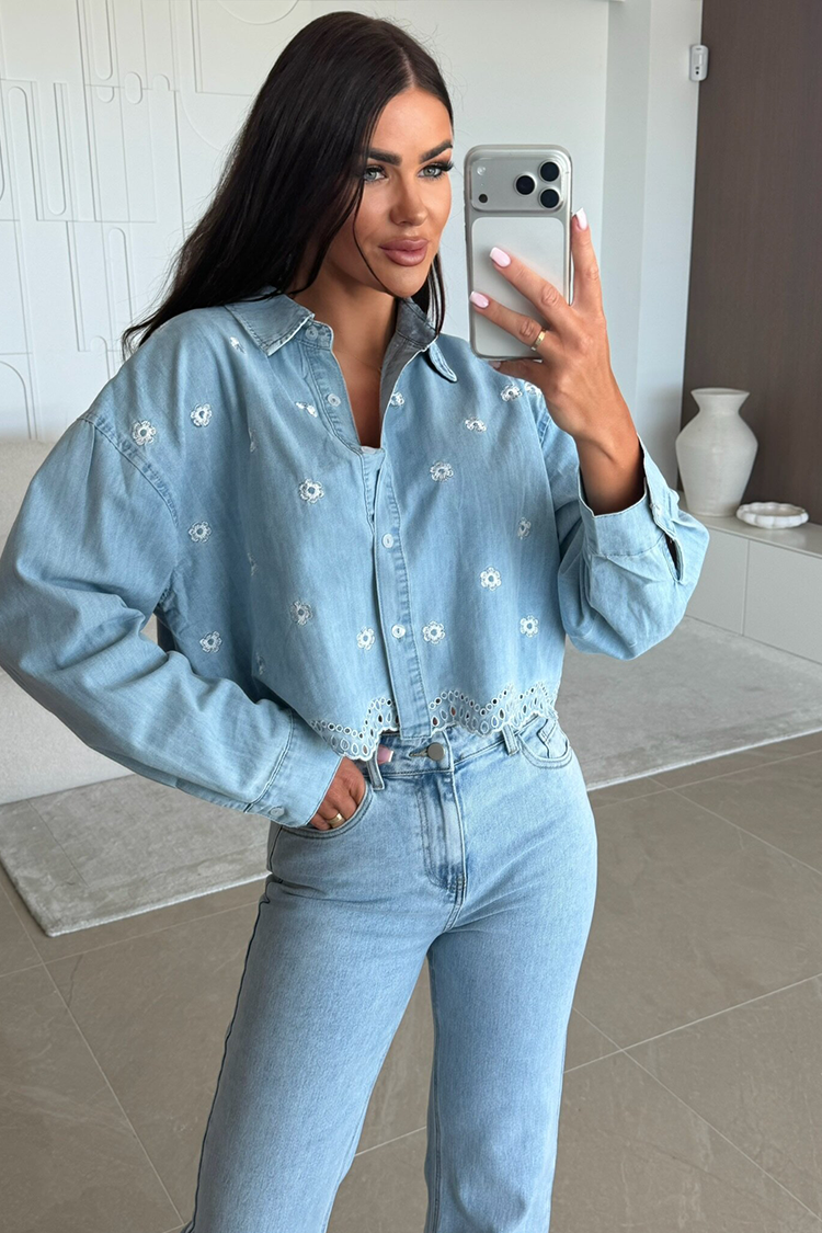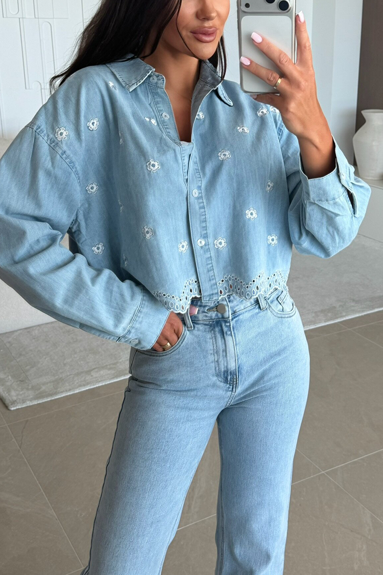 - A modell hosszú ujjú, galléros, gombbal záródó és vonzó virágmintával rendelkezik.