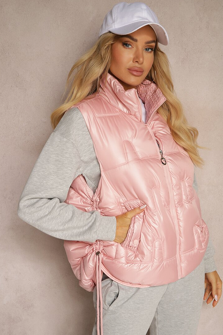 - A mellény klasszikus szabású, kényelmes nyakkal, rövid hosszúsággal és steppelt kialakítással rendelkezik.