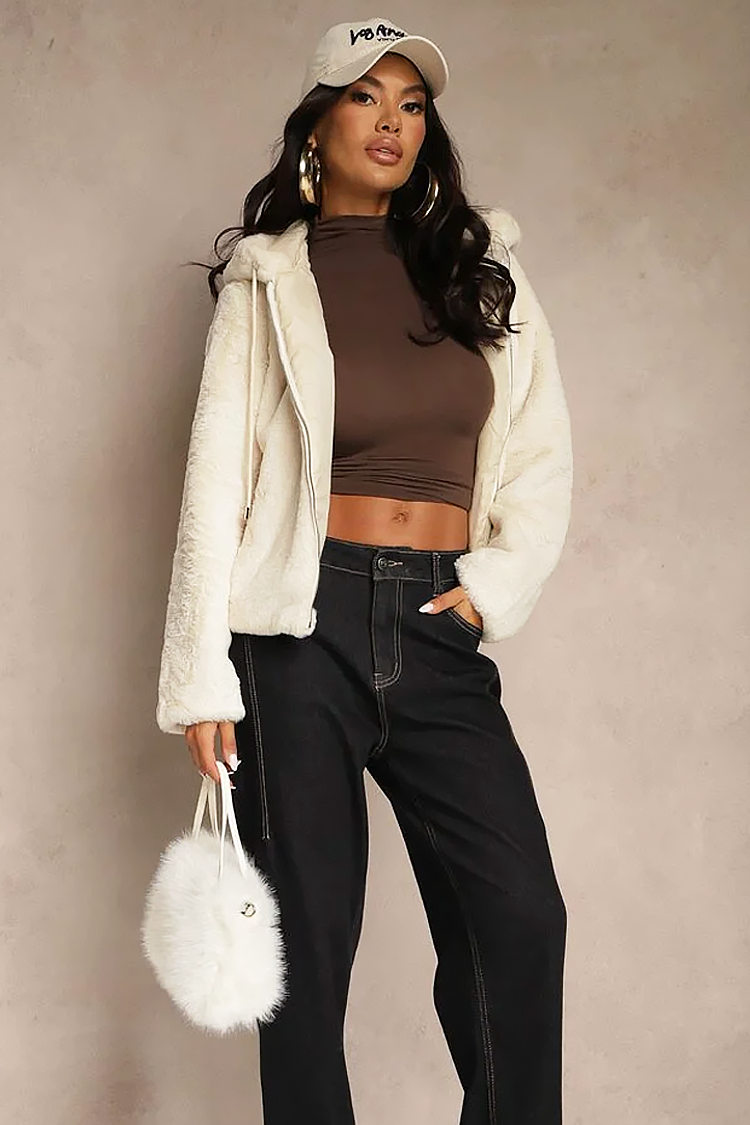 - A modell kényelmes szabású, rövid fazonú, elöl teljes hosszában cipzárral rögzíthető.