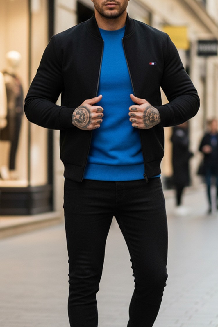 - A modell rugalmas mandzsettával rendelkezik a jobb illeszkedés érdekében. Hosszában cipzárral záródik, zsebekkel is rendelkezik.