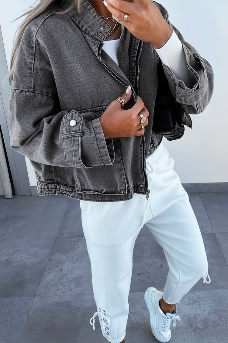 - Stílusos megjelenésért válaszd ezt a farmerdzsekit, amely bármilyen megjelenéshez illik.