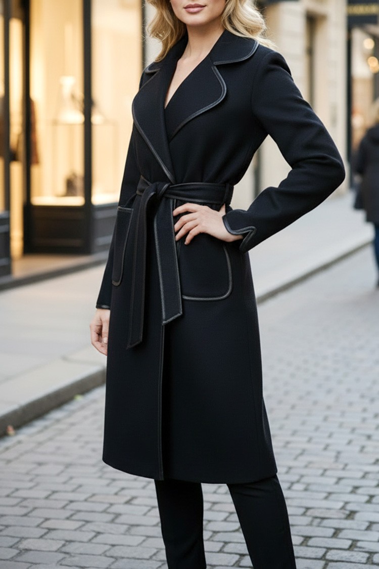 - A modell egyszínű, klasszikus gallérral és övvel rendelkezik.