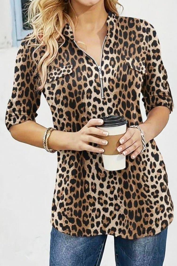 - A modell vonzó fazonú, felhajtott ujjú, elöl cipzáras és leopárdmintás.