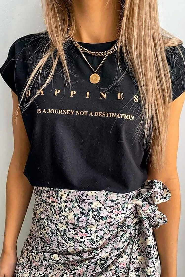 - A modell rövid ujjú, kerek nyakkivágású, precíz szabású, mutatós felirattal rendelkezik.