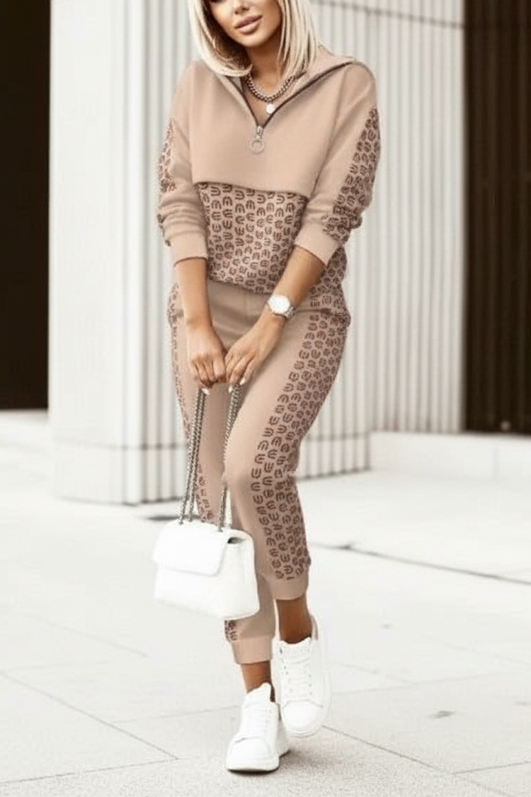 - Női mindennapi kétrészes szett látványos mintával, amely alkalmas mindennapi életre és sportolásra.