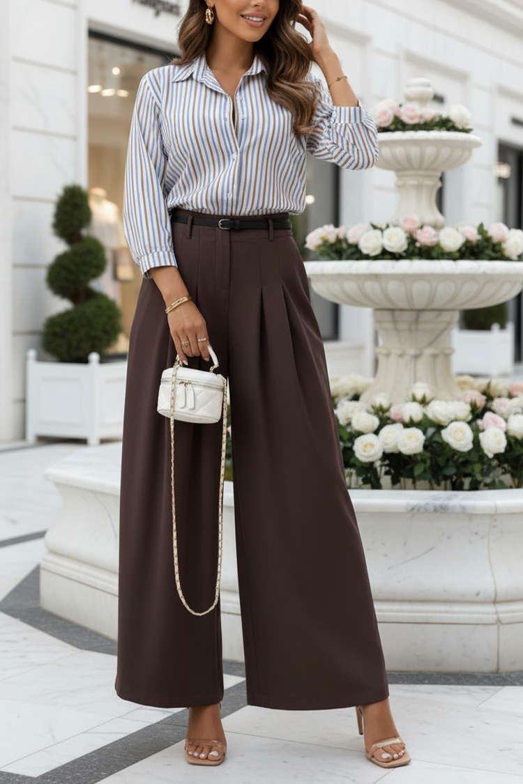 - A modell magas derekú, látványos rakásokkal, bő szabással és övvel rendelkezik.
