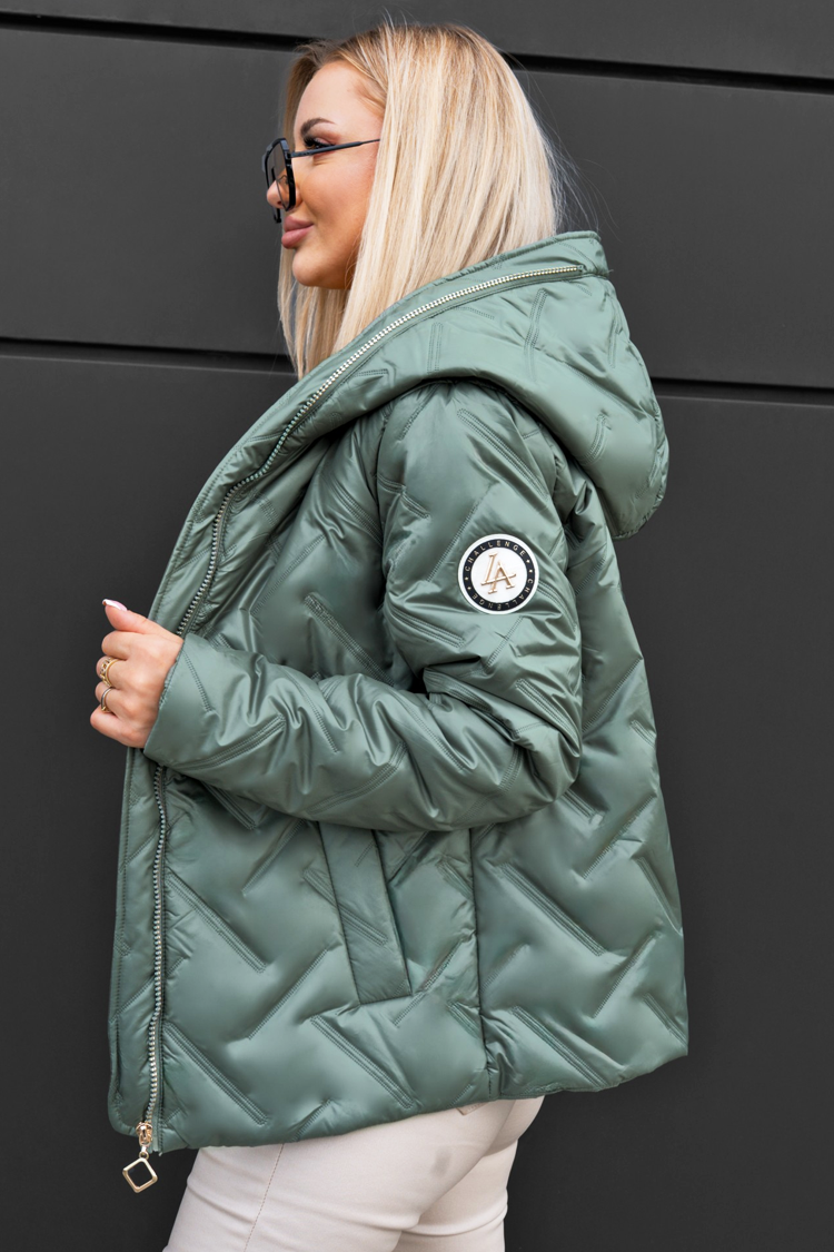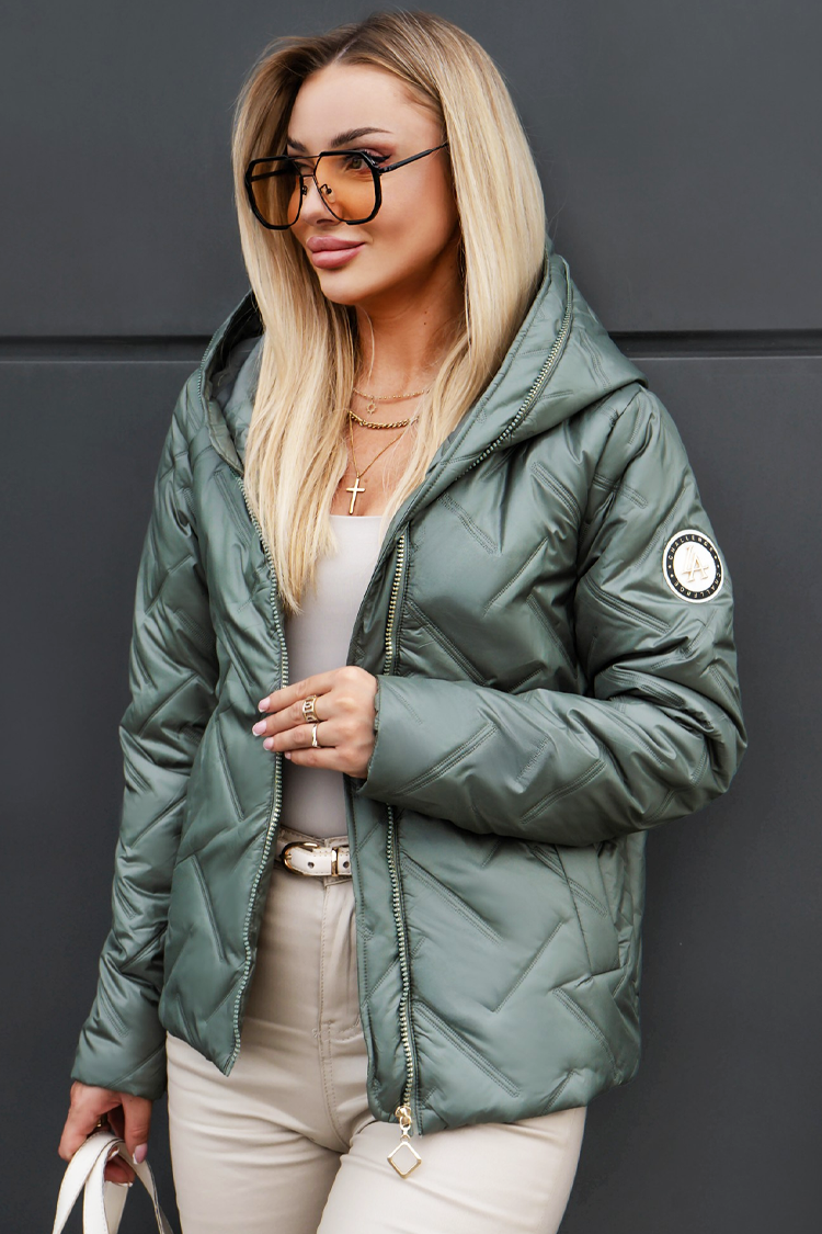 - A modell rövid szabású, kényelmes kapucnival és cipzáras záródással, zsebekkel és steppelt kialakítással rendelkezik.