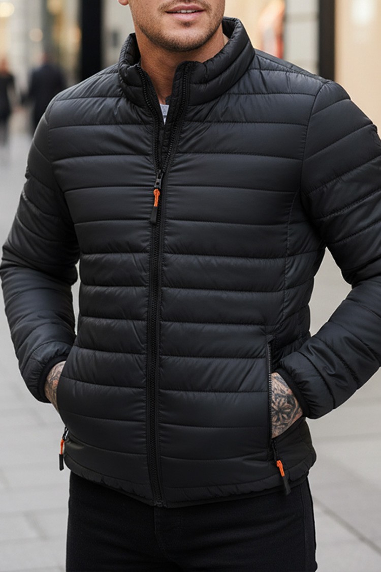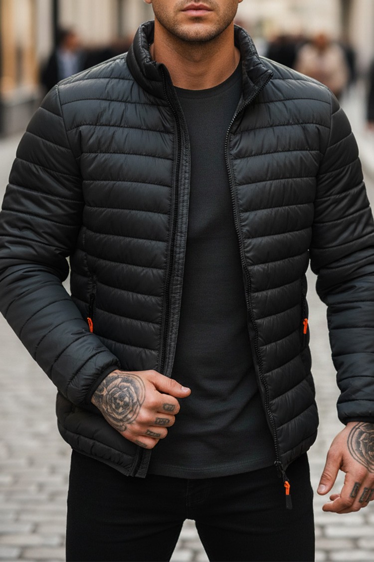 - Steppelt férfi dzseki egyszerű szabással, fekete színben, alkalmas az átmeneti évszakokra.