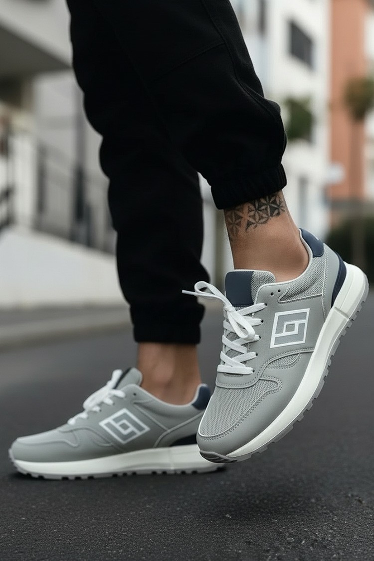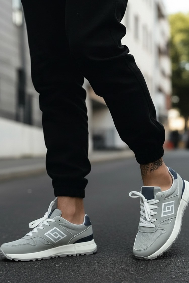 - Szürke férfi tornacipő, mindennapi életre, sportra vagy sétákra alkalmas.
