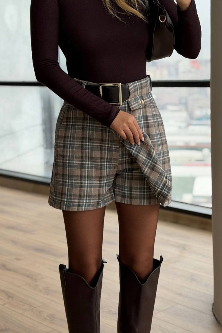 - Elegáns és szexi nadrág - szoknya kockás mintával, amely alkalmas különféle alkalmakra.
