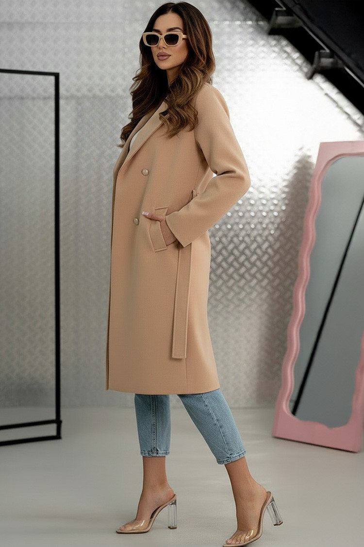 - A modell divatos színben pompázik, látványos gombokkal és ugyanabból az anyagból és színben övvel rendelkezik.