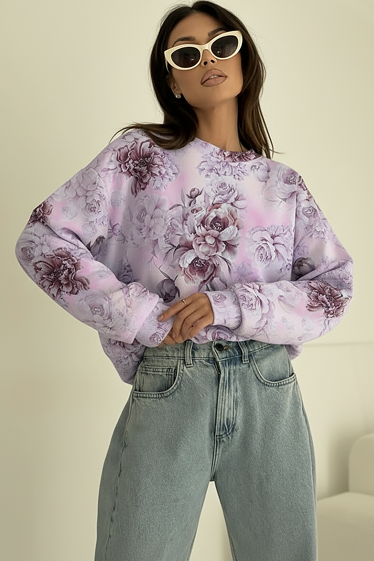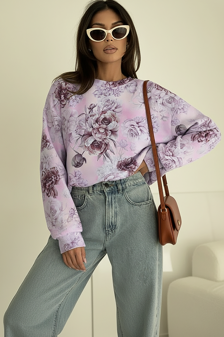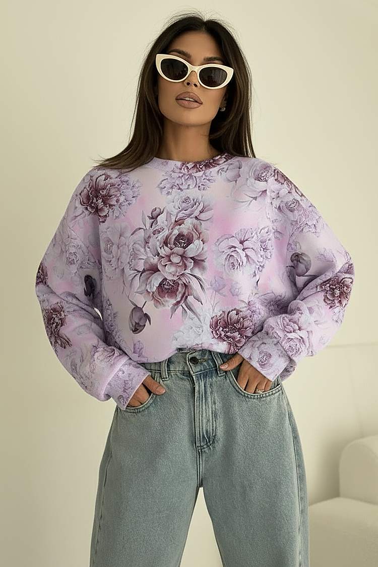 - A modell hosszú ujjú, bő szabású és látványos, virágmintás.