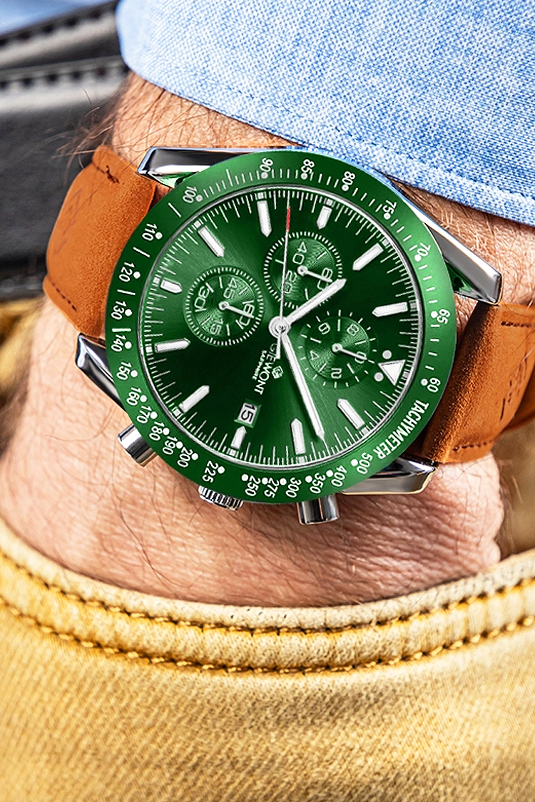 - Kiváló minőségű kidolgozás és bevált luxusdizájn - férfi karóra Giewont Chronograph Sapphire Green.