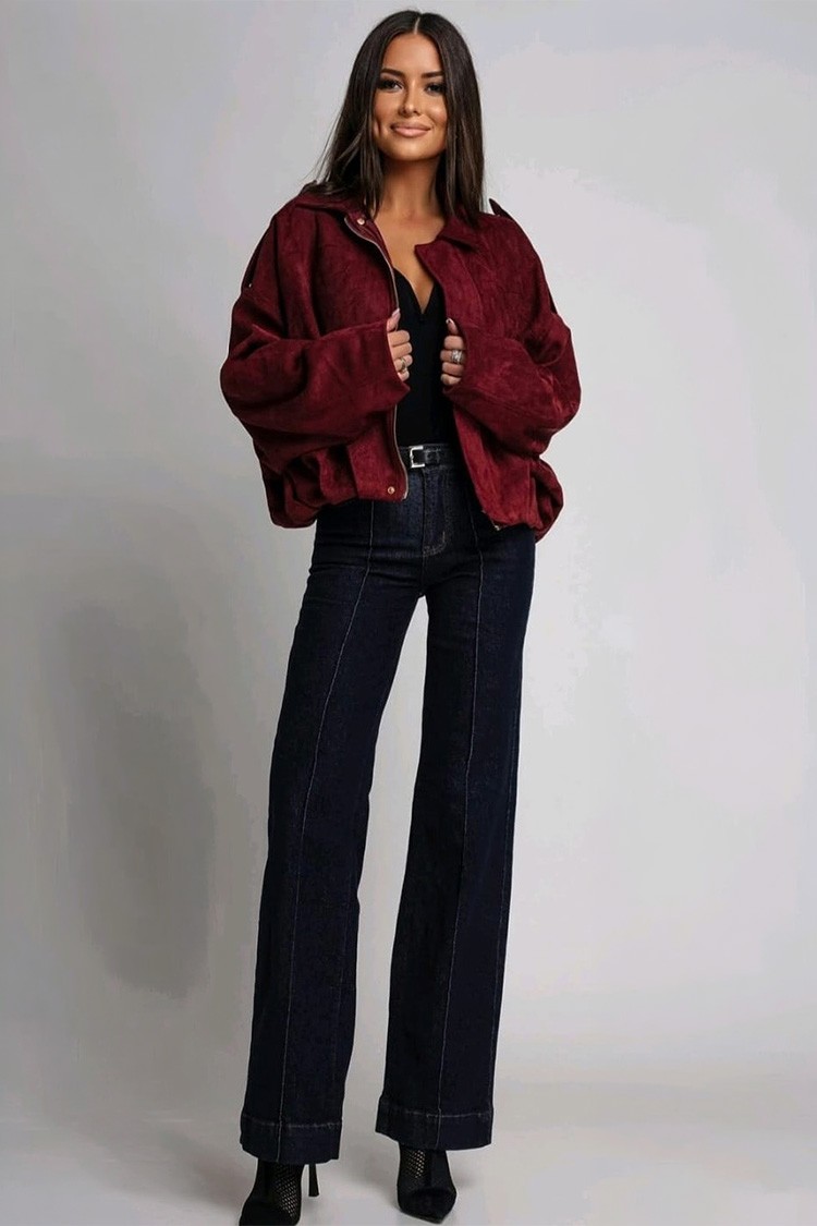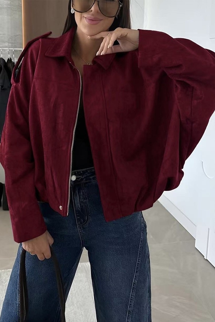 - A modell túlméretezett szabású, öko-velúr, elöl cipzárral záródik.