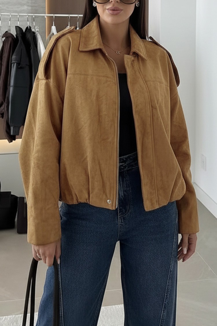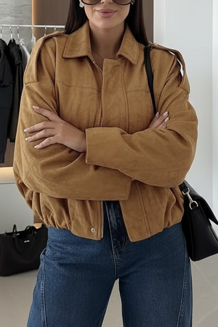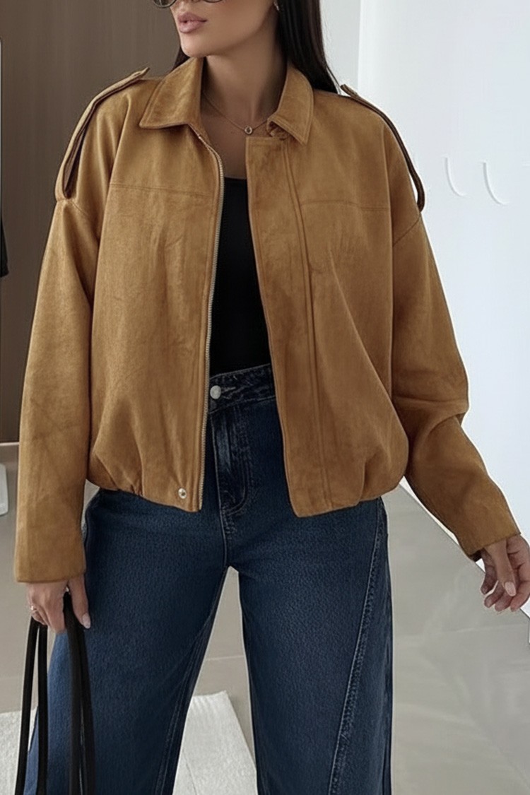 - A modell túlméretezett szabású, öko-velúr, elöl cipzárral záródik.