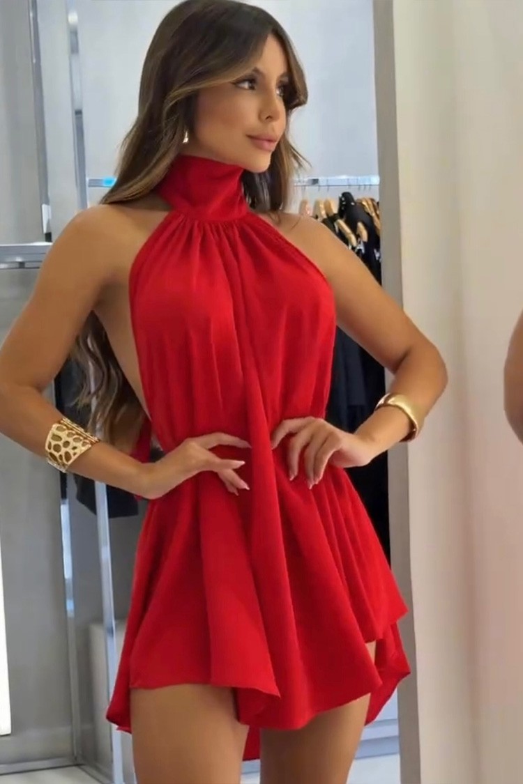 - A modell laza szabású, piros színű és szexi, nyitott hátú.