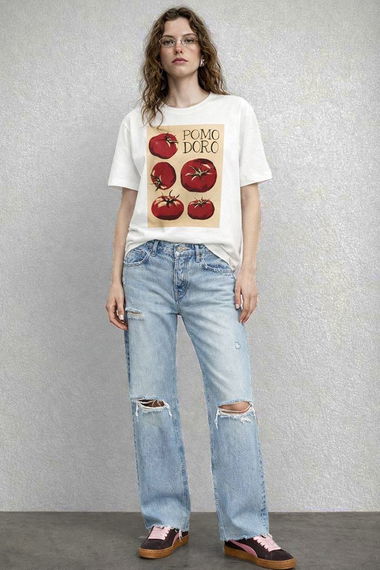 - A modell rövid ujjú, kerek nyakkivágású, oversized szabású és vonzó felirattal ellátott mintával rendelkezik.