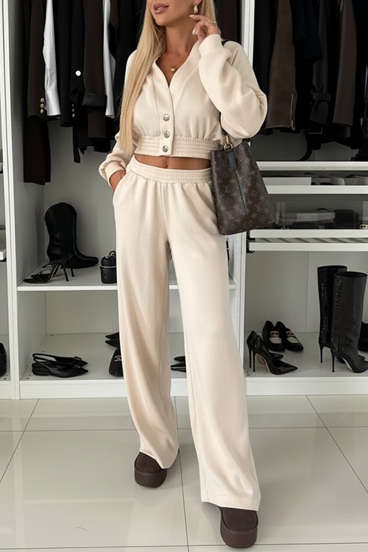- A nadrág magas, rugalmas derékkal és kényelmes szárral rendelkezik.