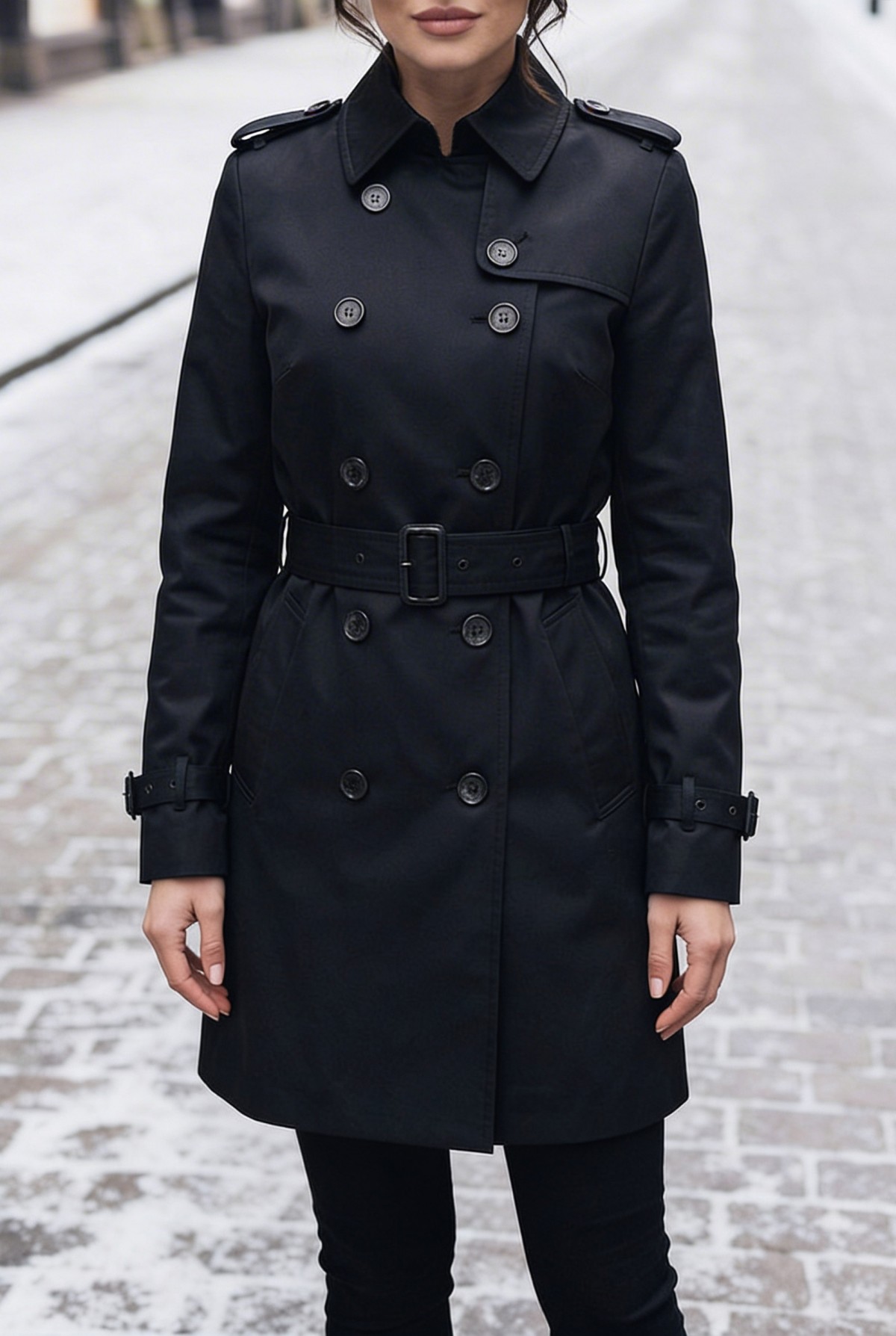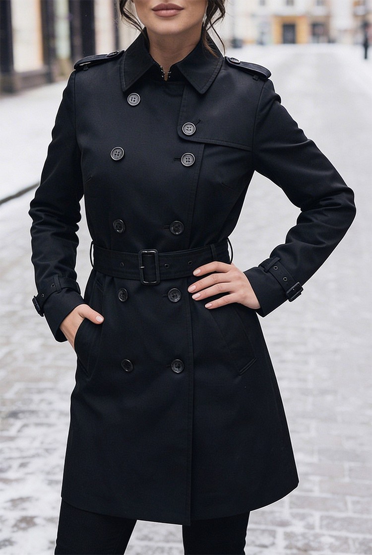 - Stílusos fekete ballonkabát gallérral és övvel, aminek muszáj jelen lennie a ruhatáradban.