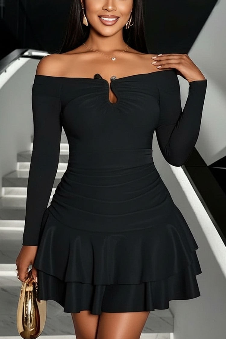 - A ruha klasszikus színű, hosszú ujjú és testhezálló szabású.