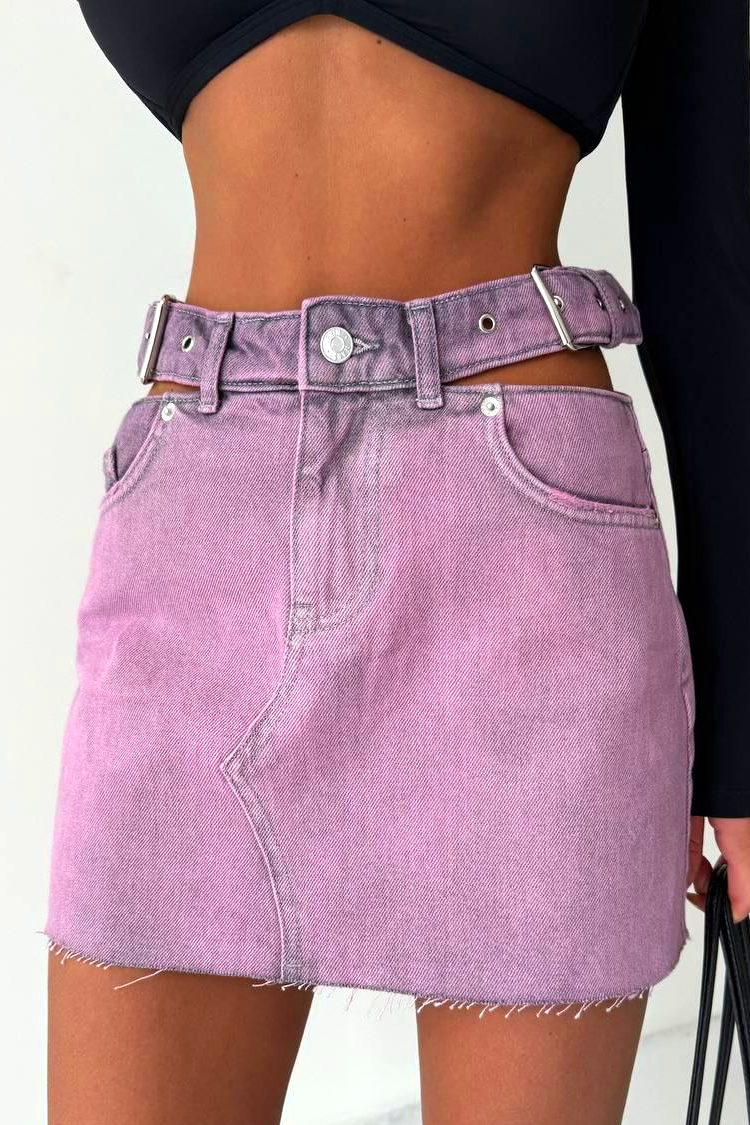 - Trendi, rövid fazonú szoknya, kiváló minőségű farmerből, amely különféle alkalmakra.