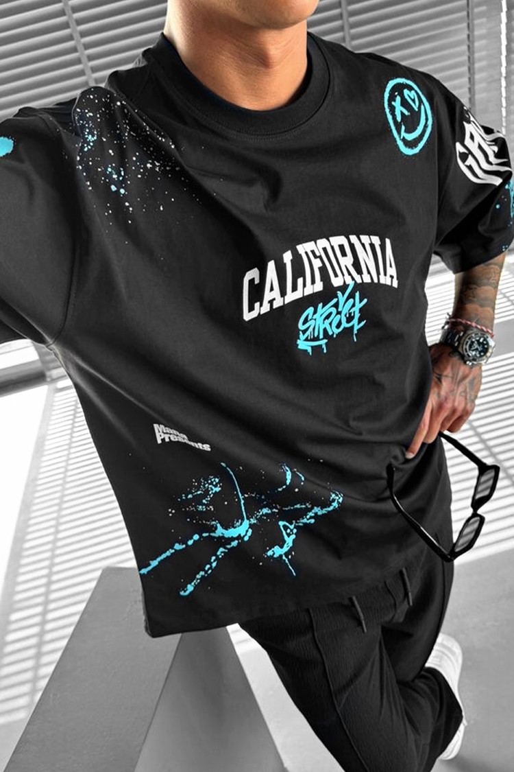 - Trendi férfi póló kényelmes szabással és mintával, amely alkalmas mindennapi életre, sétákra vagy sportos megjelenés kiegészítésére.