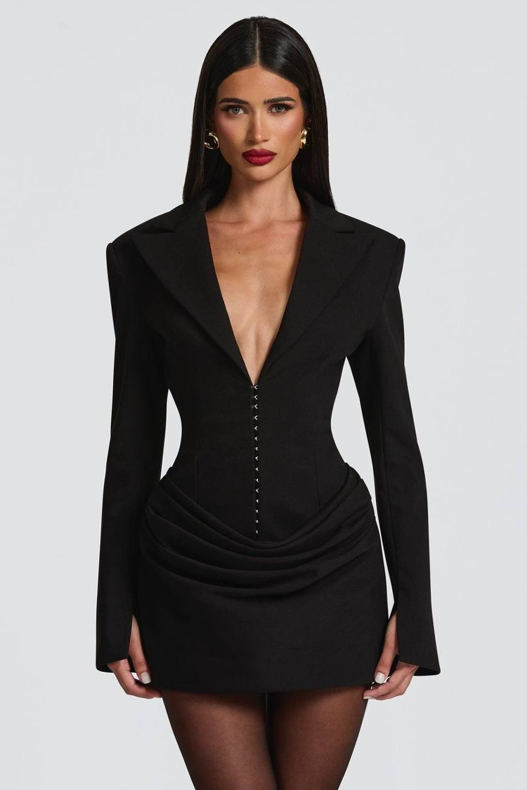 - Válaszd ezt a rövid, fekete blézerruhát - partikra és különleges alkalmakra.