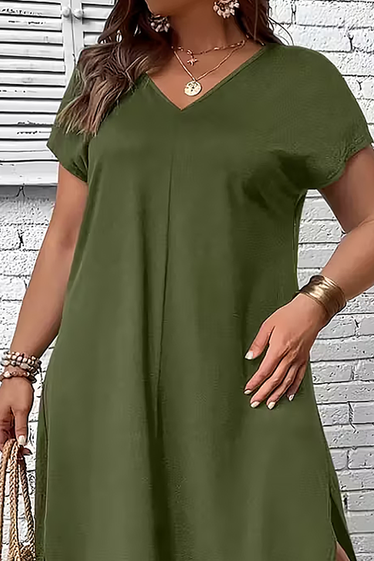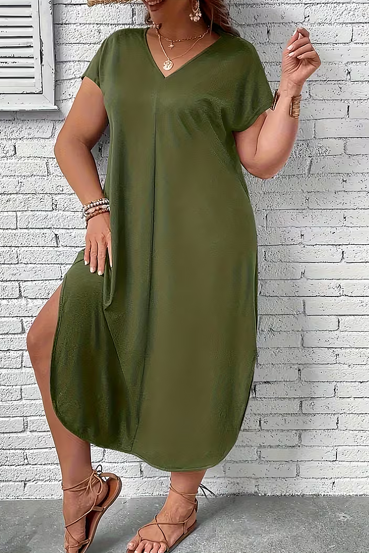 - A ruha rövid ujjú és maxi szabású, így minden alkathoz illik.