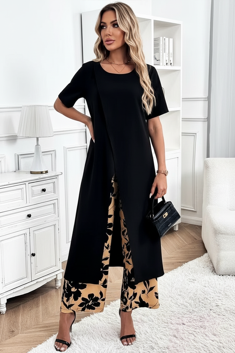 - Elegáns kétrészes szett - tunika és nadrág klasszikus színekben.