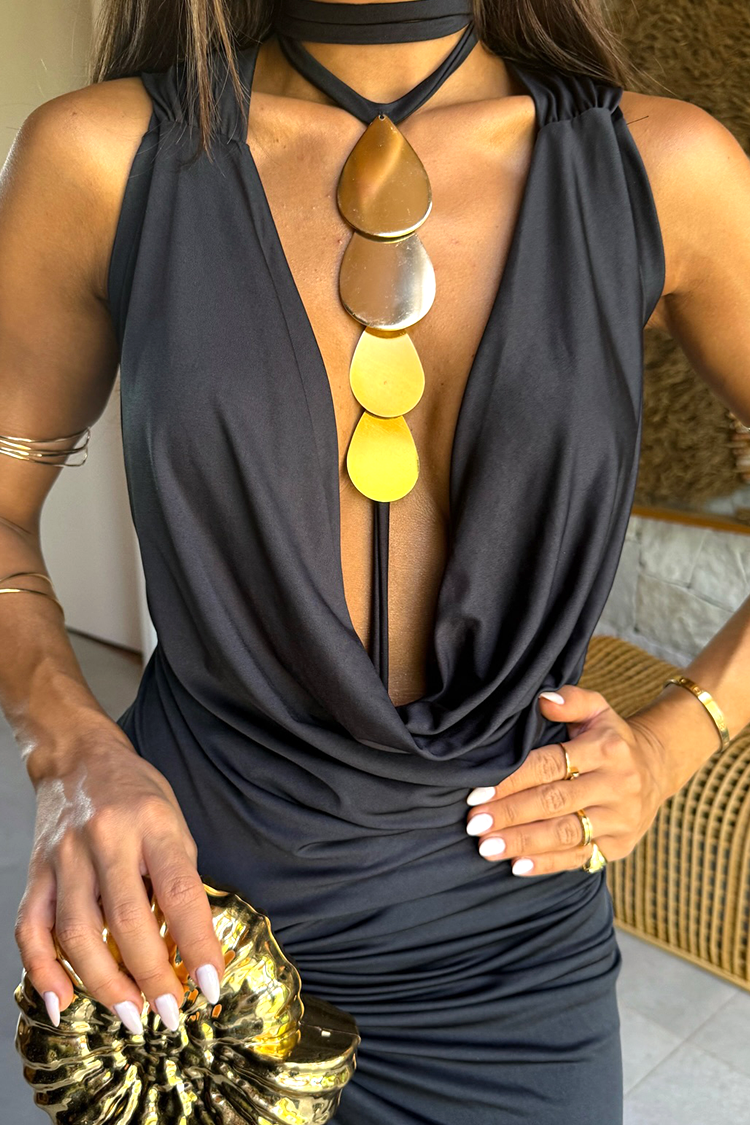 - A modell vonzó fazonú, szexi dekoltázzsal, oldalsó hasítékkal és fekete színben.