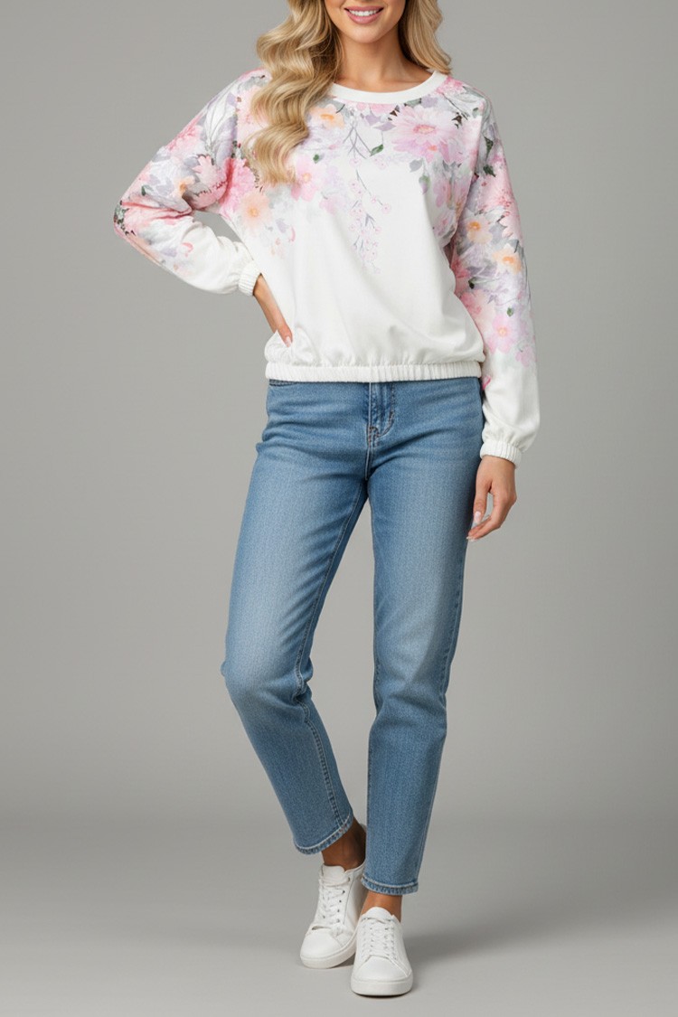 - A modell hosszú ujjú, klasszikus szabású és látványos, virágmintás.