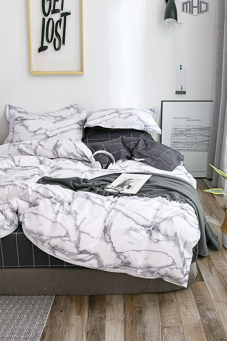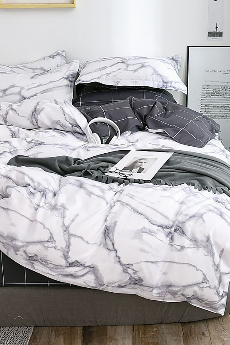 - Négyrészes, 160x200 cm-es ágyneműhuzat-garnitúra, kiváló minőségű pamutszaténból.