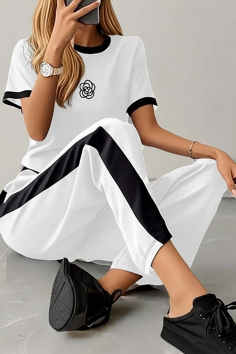 - Mindennapi kétrészes szett, amely egy pólóból és egy TRENDI színű nadrágból áll.