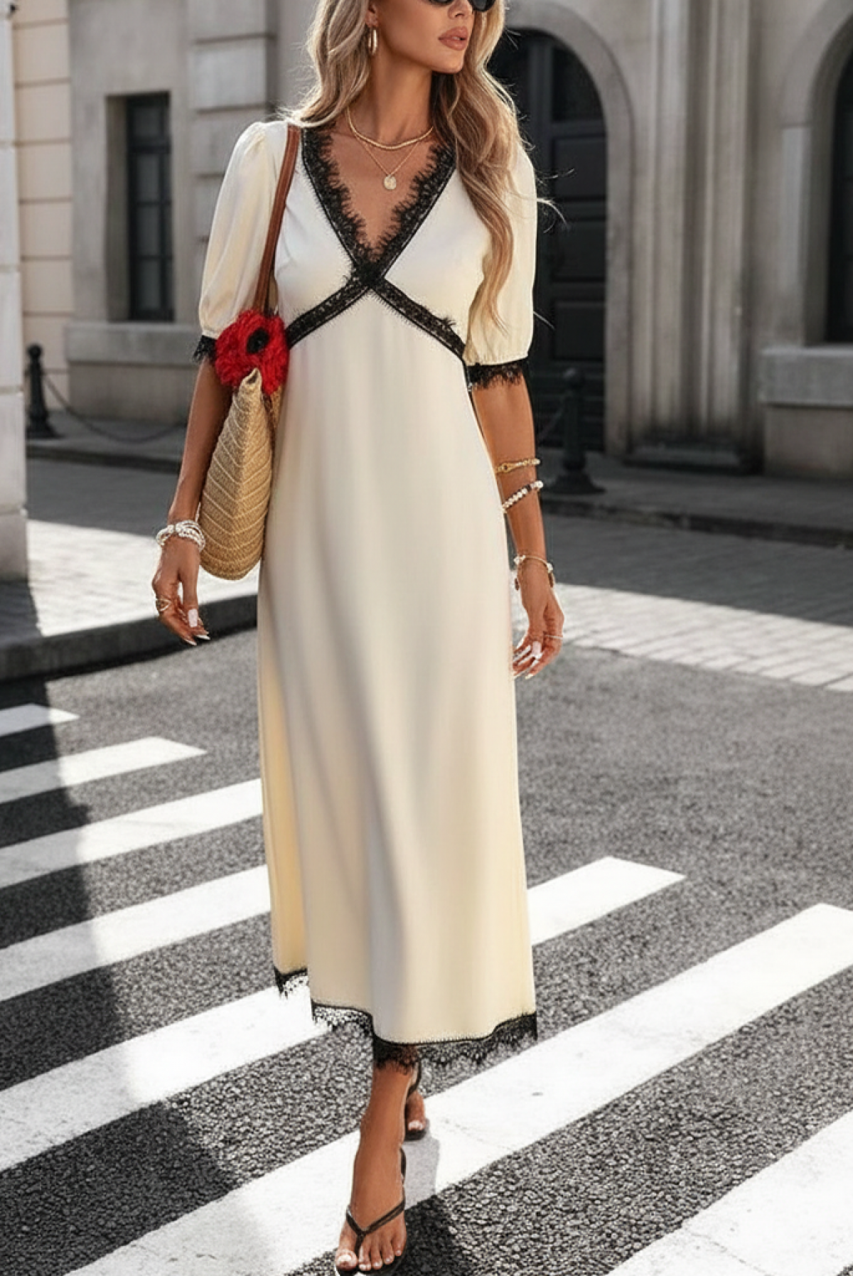 - A modell klasszikus szabású, rövid fazonú, ekrü színű és fekete csipkével rendelkezik.