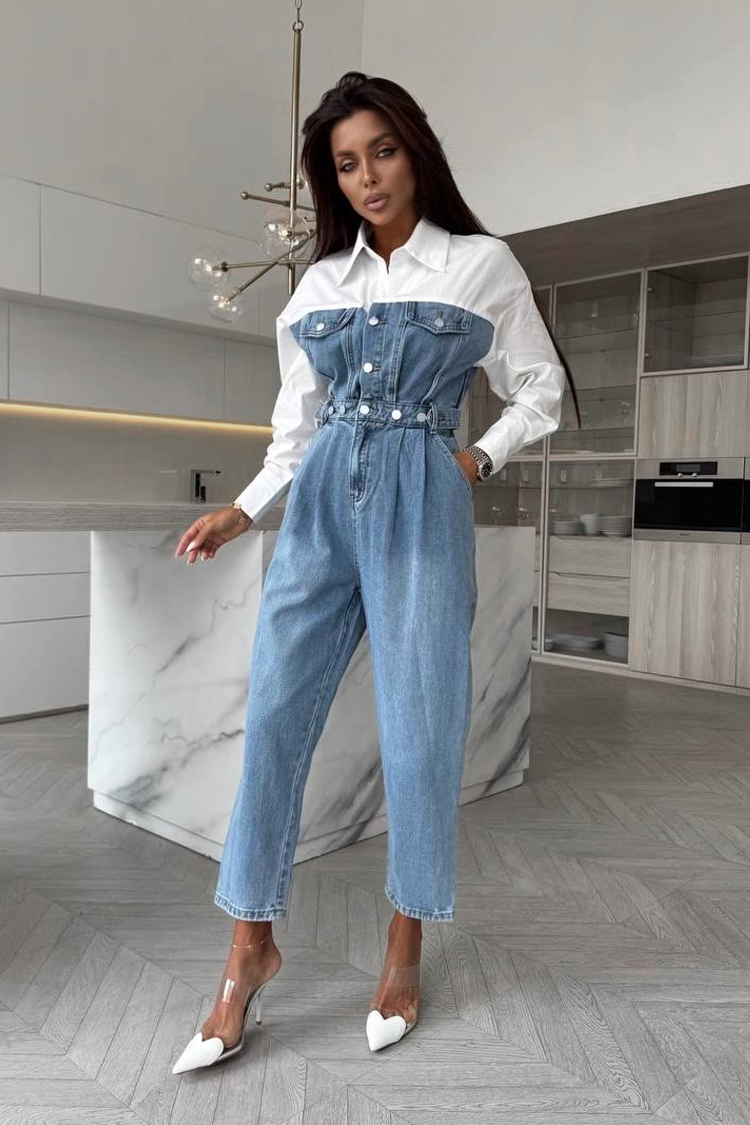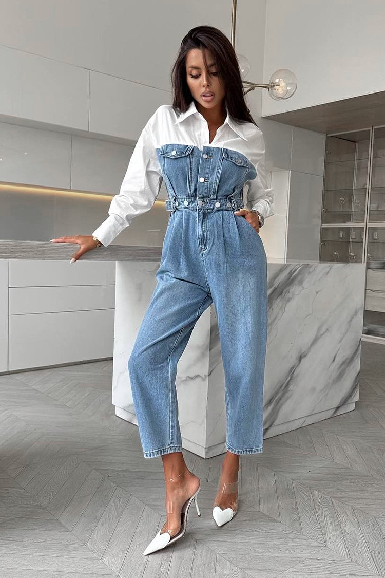 - A modell szexi dizájnnal, egyenes szabással, kombinált anyaggal, gallérral és fix övvel rendelkezik.