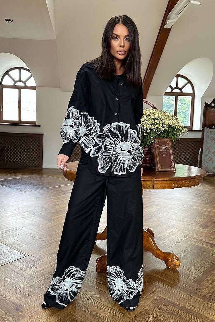 - Az ing vonzó mintával, gallérral, gombokkal és túlméretezett szabással rendelkezik.