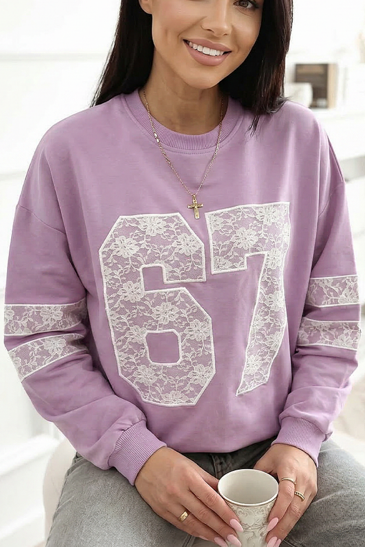 - A modell hosszú ujjú, bő szabású és látványos csipke díszítéssel rendelkezik.