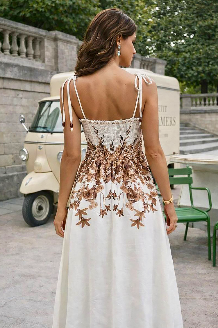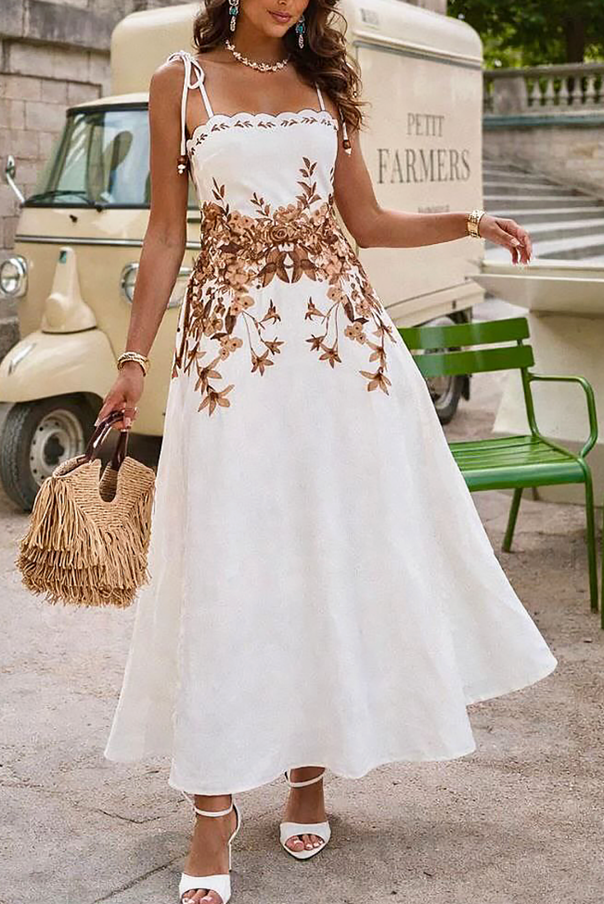 - A modell csinos szabással, vékony pántokkal, barna virágmotívumokkal és bő szabással rendelkezik.