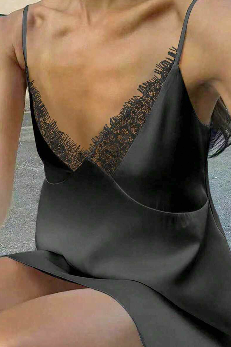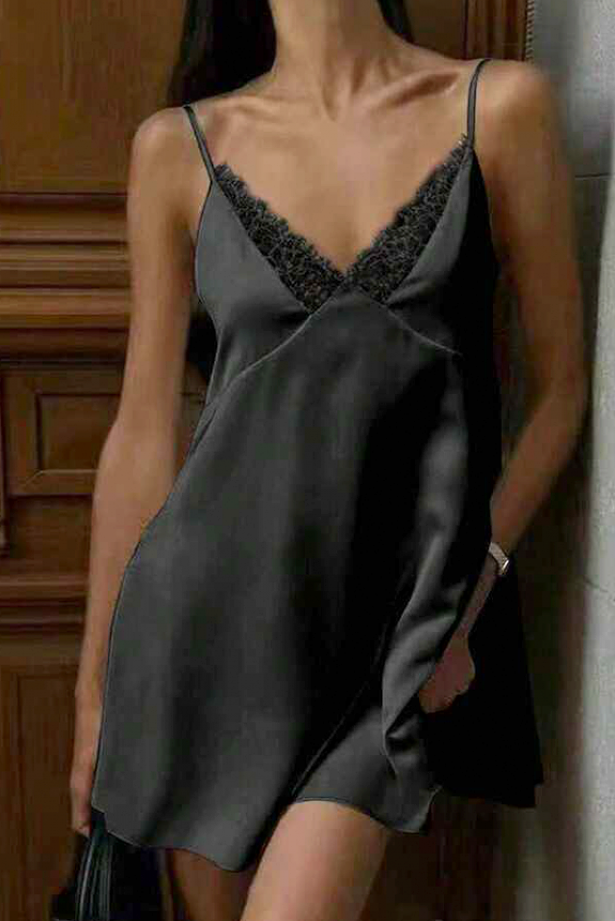 - A ruha kényelmes és bő szabású, rövid, látványos csipkével, vékony pántokkal és szexi dekoltázzsal rendelkezik.