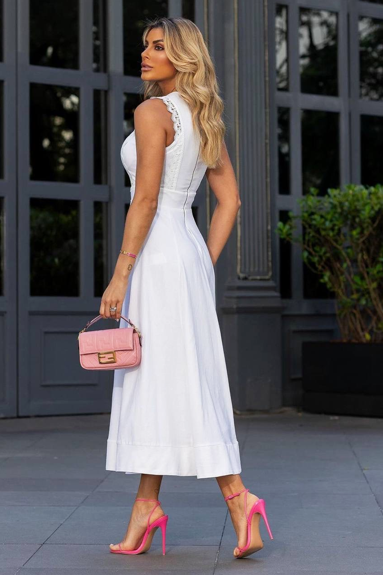 - A modell laza szabású, ujjatlan, látványos csipke és hímzés díszítéssel.