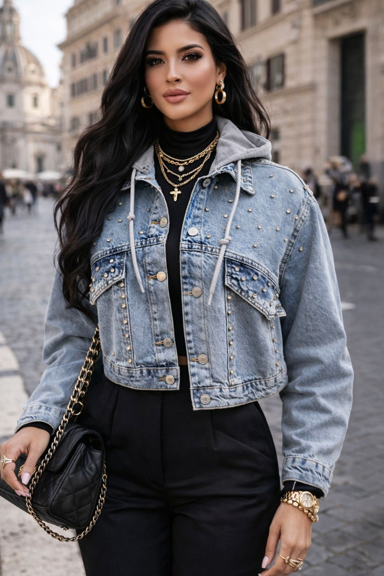 - Stílusos megjelenésért válaszd ezt a farmerdzsekit, amely bármilyen divatos megjelenéshez illik.