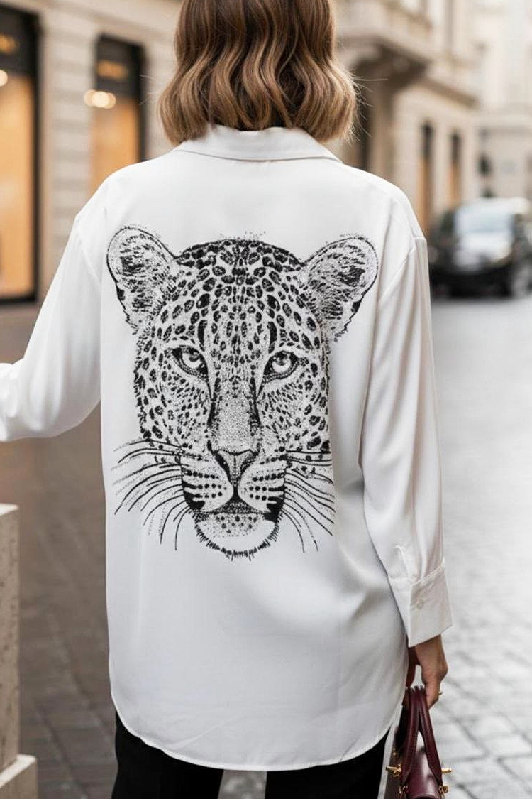 - Mutatós blúz, fehér színben, amely alkalmas a mindennapi divatos megjelenéshez.
