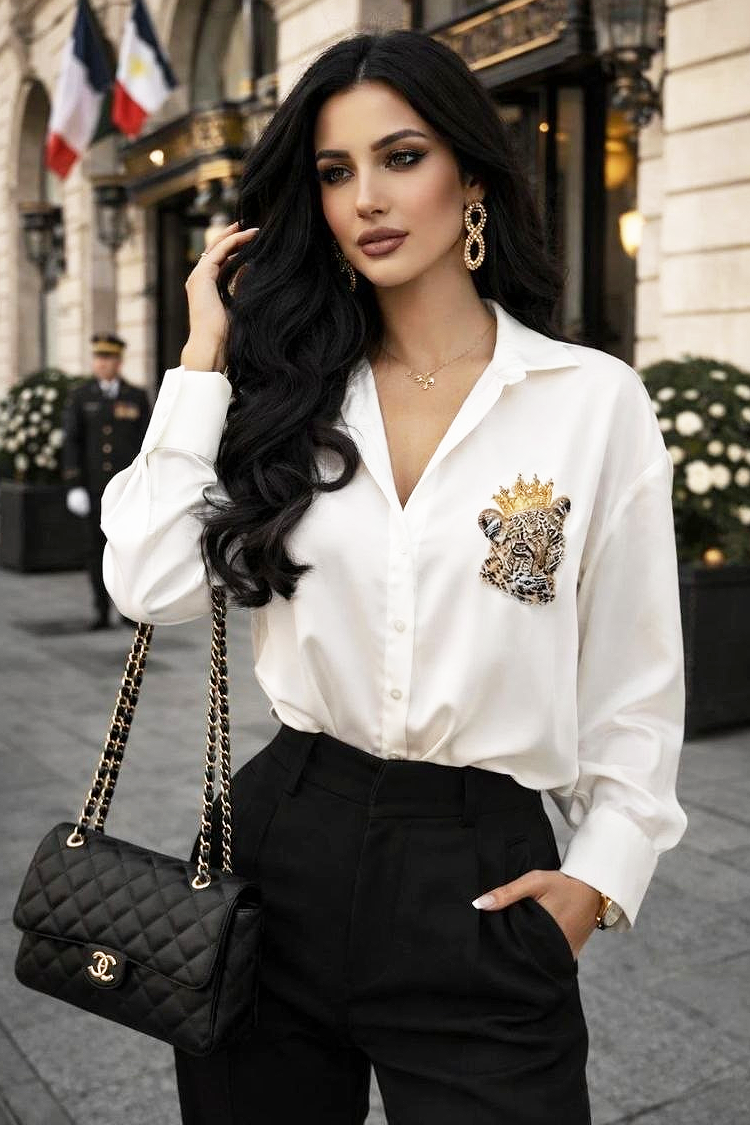 - Mutatós blúz, fehér színben, amely alkalmas a mindennapi divatos megjelenéshez.