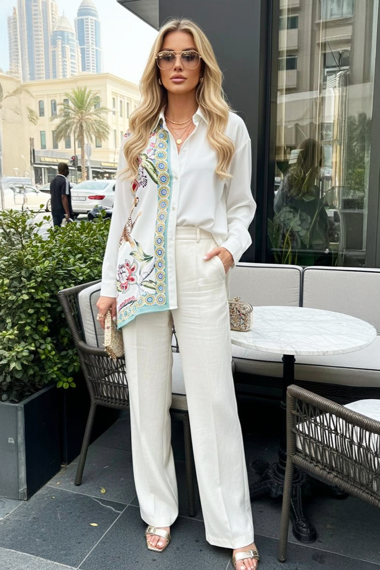 - Mutatós fehér színű női blúz, amely alkalmas a mindennapi divatos megjelenésre.