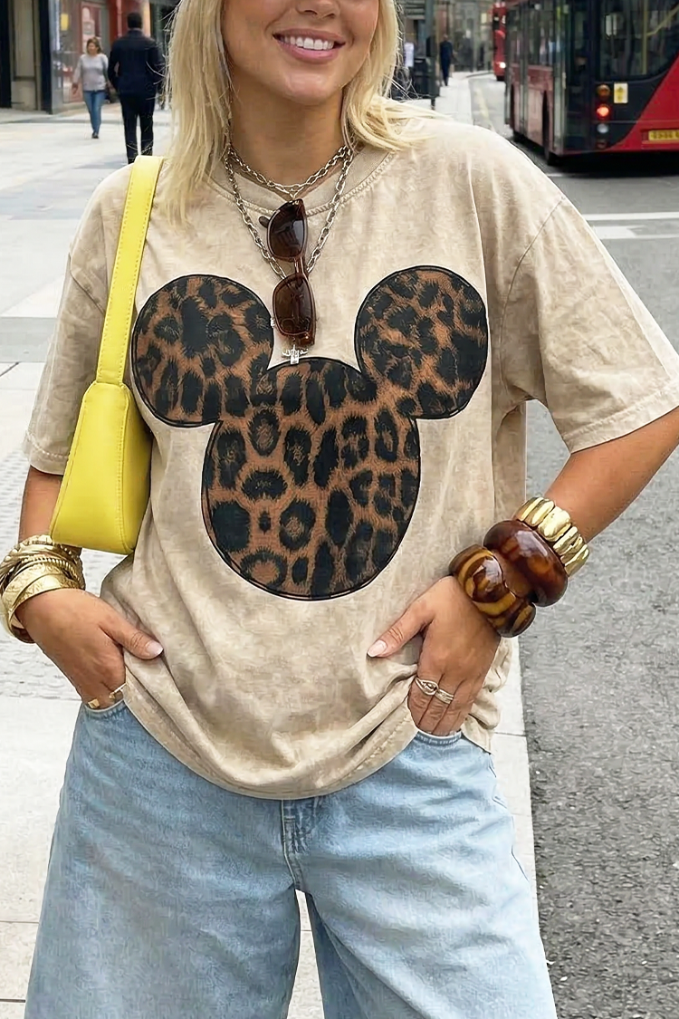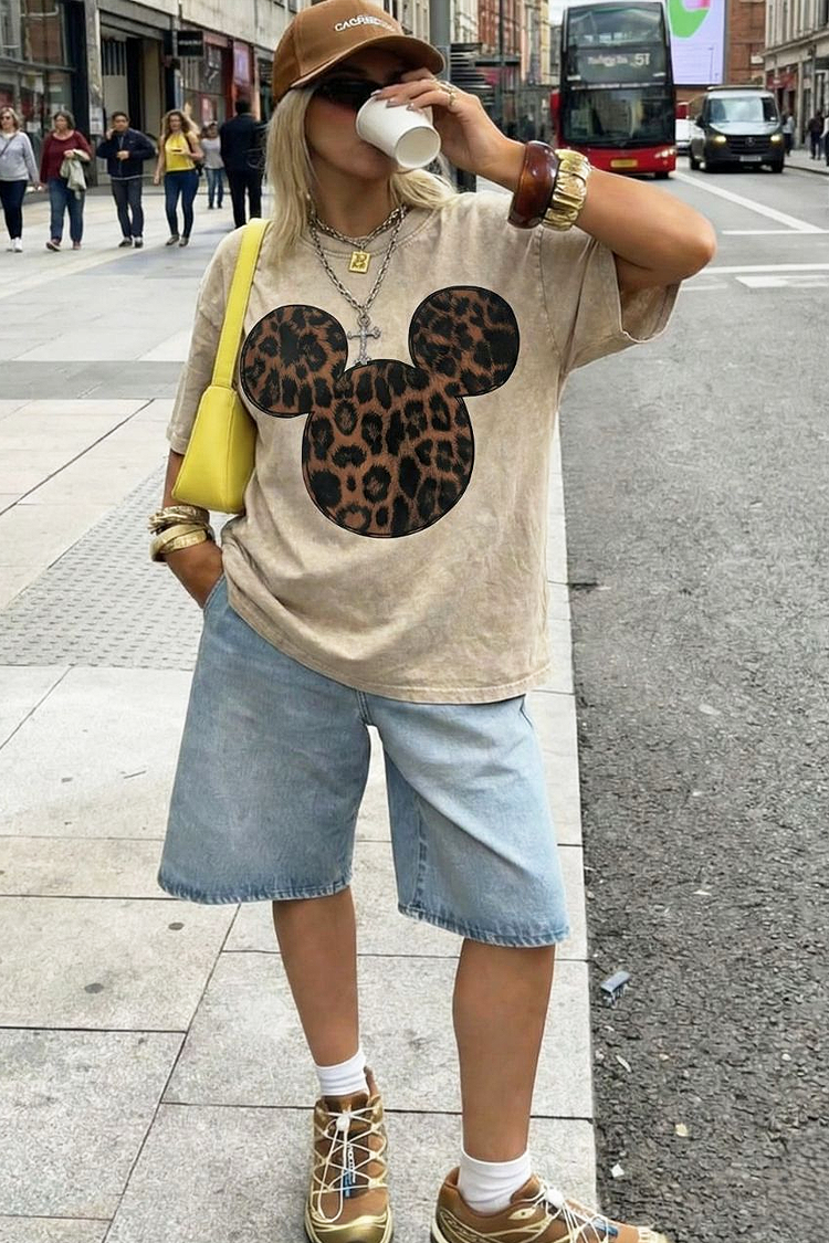 - A modell rövid ujjú, kerek nyakkivágású, oversize szabású és látványos leopárdmintás.